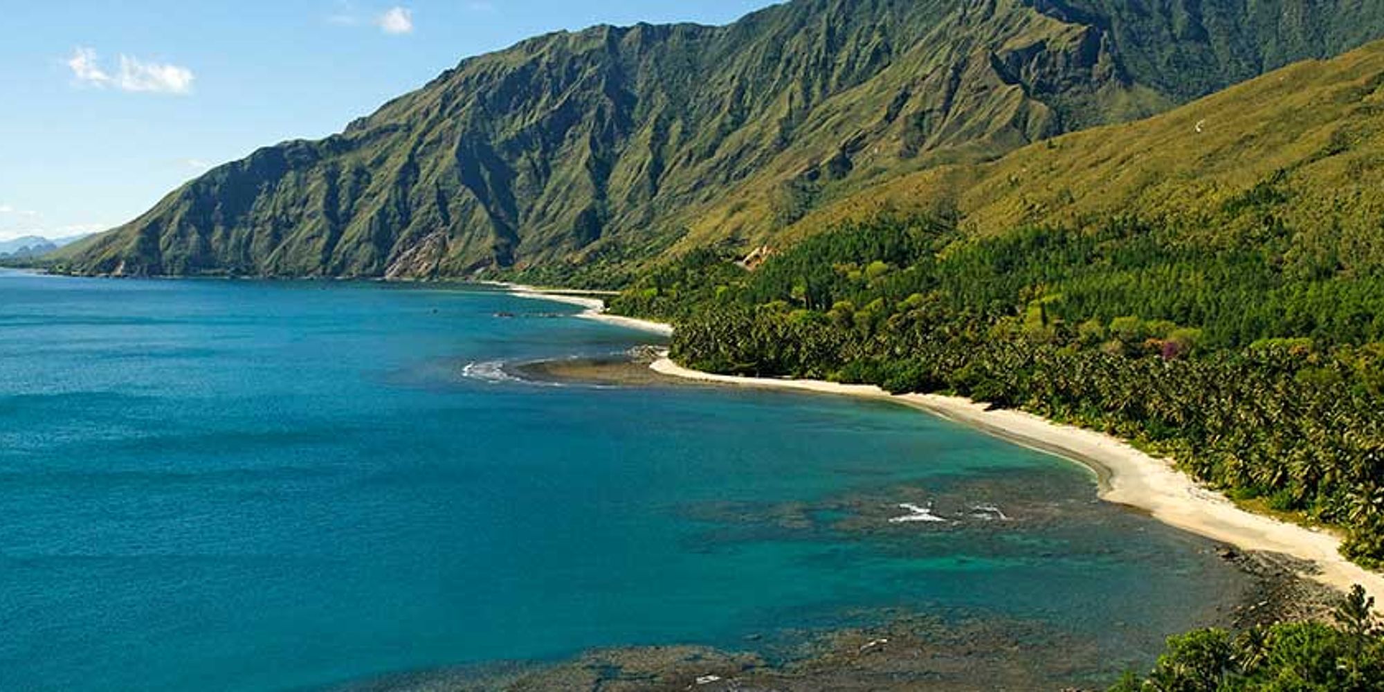 Voor de oostkust strekt zich een lang koraalrif uit. De kust wordt daardoor geflankeerd door een turquoise gekleurde lagune met beschutte baaien en prachtig witte zandstranden.